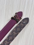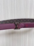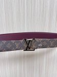 Flowergram Reversible Belt: This belt combines Monogram canvas and Monogram embossed leather for a dual-style look. A delicate, jewel-like buckle pays homage to the Monogram flower, adding an elegant touch to any outfit. 3.0 Burgundy Lychee Grain Double-Pointed Epoxy Black