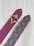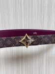 Flowergram Reversible Belt: This belt combines Monogram canvas and Monogram embossed leather for a dual-style look. A delicate, jewel-like buckle pays homage to the Monogram flowers, adding an elegant touch to any outfit. 3.0 Burgundy Lychee Grain Double-Pointed Four-Heart Gold Buckle Silver Flower
