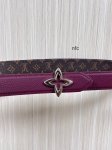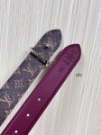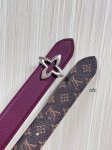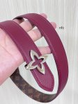 Flowergram Reversible Belt: This belt combines Monogram canvas and Monogram embossed leather for a dual-style look. A delicate, jewel-like buckle pays homage to the Monogram flower, adding an elegant touch to any outfit. 3.0 Burgundy Lychee Grain Double-Pointed Four-Leaf Buckle in Silver.
