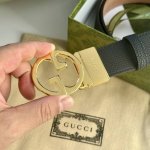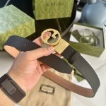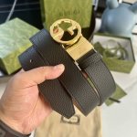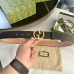 GUCCI 35mm Width Men's Belt. This stylish belt is crafted from black pebbled leather and features a Gucci nameplate rotating buckle made of all-gold metal. The length can be adjusted to your desired length! DDD