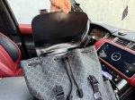 A new high-end Gucci backpack. This men's backpack features a red webbing adjustable shoulder strap, canvas with leather trim, and an apricot-colored, high-definition hardware logo and a custom lining. Smooth zippers, smooth edges, and exquisite craftsmanship, every detail is meticulously crafted! A must-have for the trendy man. Dimensions: 34 x 43 x 12 cm.