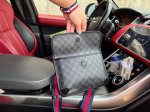 A new high-end Gucci waist bag. This Gucci shoulder bag features a Gucci monogram logo, striped webbing, and canvas and leather chest and waist bag. This men's style features a black, high-definition hardware logo and an inner compartment. It also features a dedicated lining. Smooth zippers and exquisite craftsmanship, each detail meticulously crafted! A must-have for men. Dimensions: 24 x 17 x 3.5 cm. Comes with a foldable gift box.