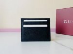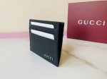 A premium Gucci-logo card holder. This men's everyday accessory is updated with classic black leather. For the Spring collection, this classic accessory is reimagined with the Gucci monogram, subtly showcasing the brand's signature. This card holder features four card slots, showcasing its ingenious design. Black leather, moir