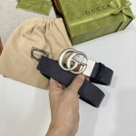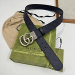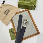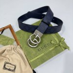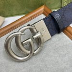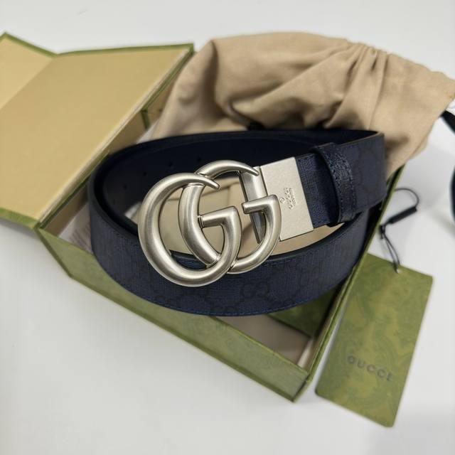 A55 Gucci 627055 Facjt Blue Supreme PVC Monogram Pigskin Texture Navy Blue Base Width 3.7cm Vintage Gg Rotating Buckle Double-sided Usable and Can Be Cut