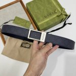 A55 Gucci 722370 Facjo Blue Supreme PVC monogram Imported Sole Width 3.5cm Square Hollowed-out Buckle Can be Cut to Size