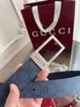 Beautiful Gucci square buckle men's new belt counter synchronization width 3.5 cm belt body canvas old flower-imported silicone bottom black exquisite vacuum electroplated double G steel buckle double-sided usable.