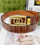 Belt: Gucci Top-Tier Original Replica. Belt: 100% Top-Grain Cowhide, Guaranteed Genuine Leather. Features a carved, openwork, diamond-encrusted 24K pure steel buckle. Never fades. Imported original crocodile leather texture. Hand-stitched with double lines. Double-sided and reversible. Equivalent to boutique quality. Ideal for gifting or personal use. Packaging: Please look for the boutique packaging shown in the picture. Includes a hole punch and UnionPay invoice. Width: 4.0cm.
