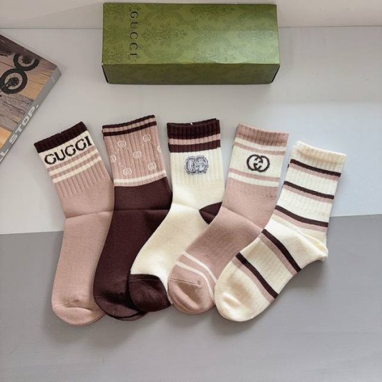 Box of 5 pairs (with packaging) Gucci New Letter Rabbit Fleece Mid-Calf Socks! Classic letter socks, same style as those in boutiques, super soft material, high-end look, a must-have for trendsetters, super easy to match.