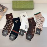 Box of 5 pairs (with packaging) - Gucci new mid-calf socks, pure cotton, a must-have for trendsetters, Gucci bestseller, classic double G, stylish and versatile, you deserve to own them!