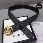 Comes with a full set of boutique gift box packaging. Gucc.I Gg Supreme premium synthetic canvas, biodegradable material, with black leather trim, double G brass buckle, 4cm wide. This belt is suitable for both low-waisted and high-waisted styles.