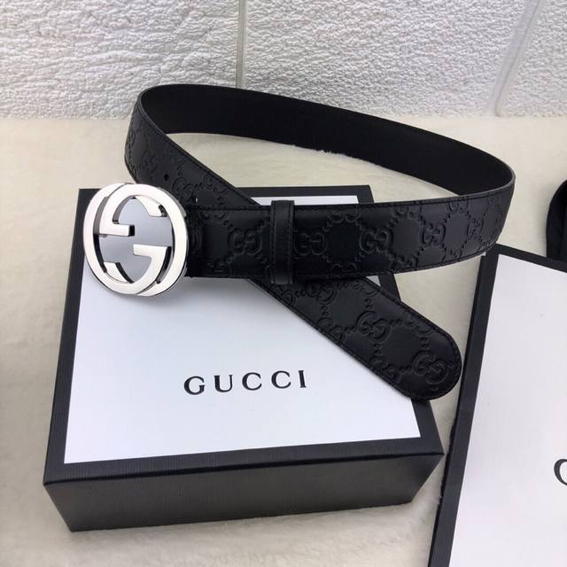Comes with a full set of packaging boxes. Gucci 3.8cm. The strap is made of imported top-grain cowhide on both sides, featuring a fashionable Gucci G print and a classic interlocking polished brass buckle.
