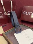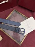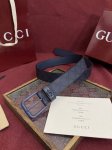 G pin buckle Gucci style number 673921 Faby3 8442. Surface material is custom blue PVC. Width is 3.5cm. Features a three-dimensional GG hardware accessory, a square, simple pin buckle.
