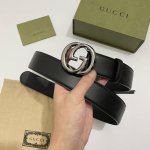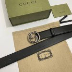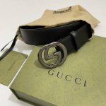 Gucccci Size: 4.0cm, with black top-grain cowhide, with new Gg interlocking polished copper metal buckle, Italian fashion boutique