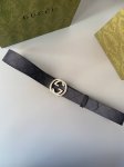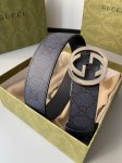 Gucci 3.5cm square G buckle reversible leather belt, featuring a canvas and blue