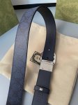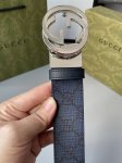 Gucci 3.5cm square G buckle reversible leather belt, featuring a canvas and blue leather double-sided design. Exquisite and comfortable texture, incredibly stylish. 65676190 DDD