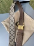 Gucci 3.5cm square G buckle reversible leather belt, featuring a double-sided design of canvas and coffee leather. Exquisite and comfortable texture, incredibly stylish. 65676190 DDD
