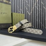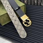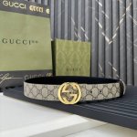 Gucci 473030 Kgdhn 525040 Beige Supreme PVC monogram imported calfskin sole, 3.7cm width, small Gg rotating buckle [Original quality buckle] Reversible and can be cut.