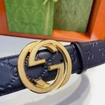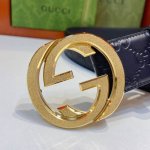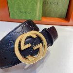 Gucci classic style, double-sided original calfskin embossed leather belt with stainless steel hardware, authentic size 3.8cm.