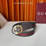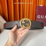 Gucci Fall/Winter 2025 new collection. This belt features red and green webbing and brown calfskin leather, paired with a detachable interlocking double-G buckle, making it reversible and trendy. DDD