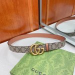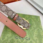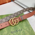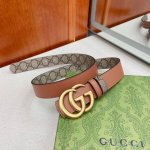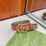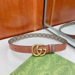 Gucci Gg Marmont Reversible Belt, 3.0cm Wide DDD One side is dark brown Gg Supreme canvas, the other is top-grain cowhide, with a double G buckle, suitable for both low-waisted and high-waisted styles. DDD