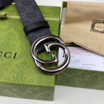 Gucci Gg Supreme premium synthetic canvas, biodegradable material, with black leather trim and a double G buckle. This 4.0mm wide belt is suitable for both low-waisted and high-waisted styles.