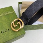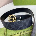 Gucci Gg Supreme premium synthetic canvas, biodegradable material, with black leather trim and a double G buckle. This 4.0mm wide belt is suitable for both low-waisted and high-waisted styles.