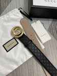 Gucci men's belt with full gift box, Gucci classic style, laminated small G flower, lining with color-changing matte bottom, width 4.0cm, round double G retro buckle