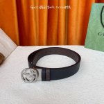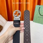 Gucci new belt, one side is classic lychee pattern, the other side is brown embossed small flowers, with counter boutique rotating buckle, reversible, width 4.0cm