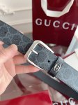 Gucci style number 673921 92Tin 1000. Surface material is custom black PVC, reverse side is custom silicone leather (3.5cm width). Features a three-dimensional GG hardware accessory: square minimalist pin buckle.