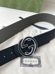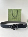Gucci Width 4.0Cm The Spring Collection reinterprets the brand's classic elements through a modern perspective. This belt is crafted from cowhide leather and cleverly embellished with an interlocking double G buckle and intarsia cowhide leather. This belt is crafted from gray cowhide leather on the front and black cowhide leather on the back, bringing more styling options.