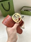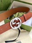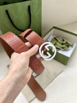 Gucci Width 4.0cm This piece connects the brand's past and future, reinterpreting classic design elements with a modern twist. The Guccio Gucci monogram cleverly integrates textures and materials, embellishing this blue leather belt with printed embossing. The iconic Double G design adds to the charm of the design.