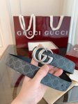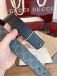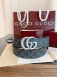 Full set of packaging, stunning Gucci Double G men's new belt, counter-synced, 3.5cm wide, canvas with gray monogram and imported pigskin texture, exquisite black vacuum-plated Double G steel buckle, reversible.