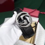 Gucci's latest classic style, available in boutiques. Width 4.0. A more affordable option is available with a standard buckle. Original factory embossed leather, high-end quality. Need I say more? Hand-stitched with waxed thread. Buckle: pure copper plated with palladium. (For more information, please search online.) Available in gold, silver, and gunmetal. Sizes: 100-125cm.