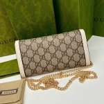 Guccl 6880 Color: Brown and White Size: 19*10.5*3.5 Gucci New 1955 Saddle Buckle Woc In Stock Exclusively Photographed. Phone, credit card, lipstick, keys... all essential small items are included in this bag. It also has a zippered compartment. Remove the chain and use it as a clutch.