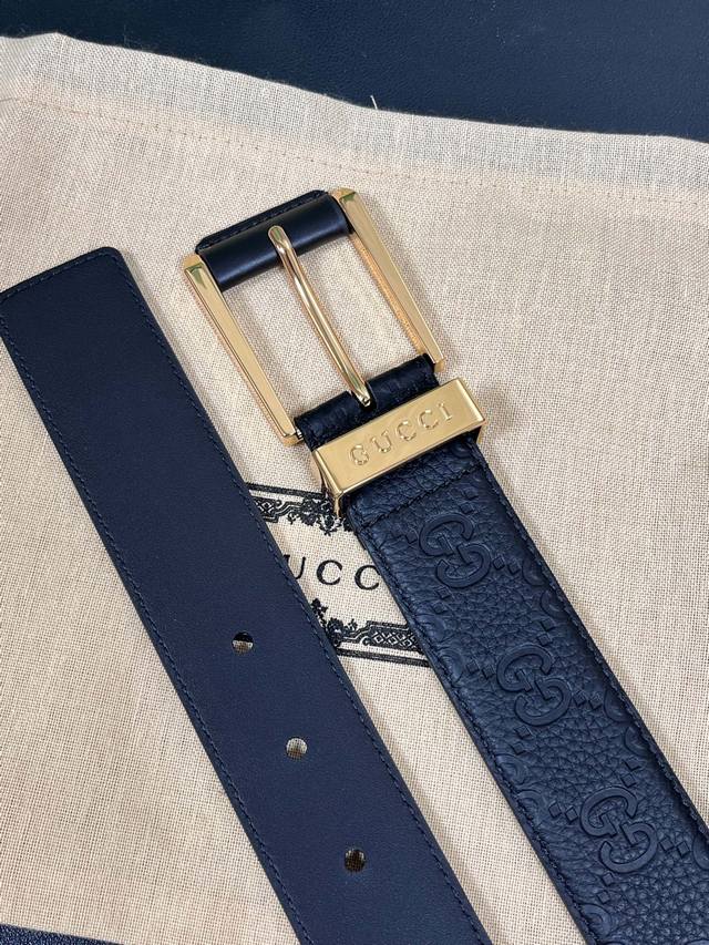 New for the season, this belt features exquisite neutral-toned calfskin leather perfectly paired with a square buckle, exuding effortless business formality. This wide belt is crafted from premium smooth calfskin leather, with Gucci engraving on the square buckle's metal ring adding a touch of individuality. 3.5mm pebbled embossed pin buckle.