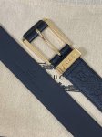 New for the season, this neutral-toned belt perfectly combines refined cowhide leather with a square buckle, effortlessly evoking a formal, business-inspired look. This wide belt is crafted from polished cowhide leather, and the square buckle features a Gucci engraving on the metal ring, adding a touch of personality. 3.5" lychee-embossed pin buckle