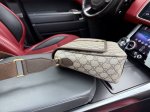 New high-end "Gucci" shoulder bag, Gucci messenger bag, Gucci Ophidia Double G logo, adjustable shoulder strap, magnetic flap closure, canvas and leather messenger bag, medium size, men's, beige and ebony #Versatile classic recommendation# High-definition hardware logo, interior compartments! Dedicated interior lining. Smooth zippers, exquisite workmanship, and every detail are meticulously crafted! A must-have for men. Dimensions: 28 x 22 x 8 cm, comes with a gift box.