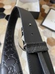 Original quality Gucci men's interlocking double G buckle belt, crafted from Gucci Signature genuine leather using heat-pressing technology, with a thick feel and clear, distinct printed pattern. 4cm 65637200 DDD