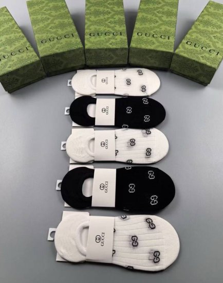Special Gucci Gucci G's new women's invisible socks come in a box of five pairs. These have a classic jacquard logo and are made of pure cotton. They're super comfortable and beautiful. A must-have for trendy people, super easy to match.