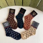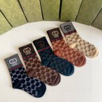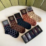 Special packaging from the boutique! Gucci's new gold-threaded mid-length slouch socks! Five pairs per box, same style as boutique socks, a must-have for trendsetters, super easy to match!