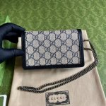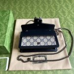 The top-of-the-line Gucci "March of Love" collection features Gg Supreme canvas in a timeless blue and beige color combination. This canvas, steeped in history, has been used across multiple collections and has become a signature material for the brand. This ultra-mini Dionysus bag features a classic colorway. Style number 476432. Dimensions: 16.5cm long x 10cm high x 4.5cm high. Color: Blue leather and blue rubber.