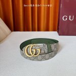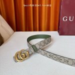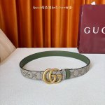 This Gucci 30mm belt features a soft Gg Supreme canvas on one side and green cowhide leather on the other, paired with a detachable interlocking double G buckle. It's reversible, trendy, and adds a unique charm to the overall design. DDD
