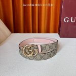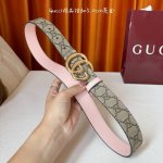This Gucci 30mm belt features a soft Gg Supreme canvas on one side and pink calfskin leather on the other, paired with a detachable interlocking double G buckle. It's reversible, trendy, and adds a unique charm to the overall design. DDD