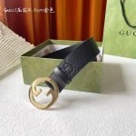 This Gucci 4cm wide belt is crafted from GG leather and reinterprets the brand's iconic logo with a maximalist approach, creating an accessory that combines classic elements with modern essence. The circular interlocking double G buckle adds a unique charm to this accessory.