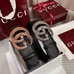 This Gucci men's belt is eye-catching and stylish. From the early spring collection, one side is black GG-print embossed cowhide leather, and the other side is black leather. It's 4cm wide. DDD