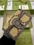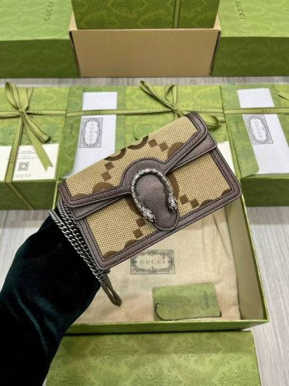 This top-of-the-line Gucci Meo Vintage crossbody bag, a miniature version, stands out from the crowd in the Infinity Overture collection, infusing vintage style with modern design. The mini bag features an oval leather tag and the brand's signature feline head. This miniature bag embodies all the brand's classic elements, creating a versatile and adorable look that's both classic and vintage. Style number: 476432. Dimensions: 16.5 x 10 x 4.5 cm. Color: Big G fabric.