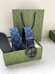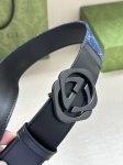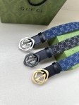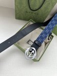 Width 3.8cm Gucci. Every season, the brand revitalizes its logo, infusing new ideas into classic designs. On this belt, the iconic Gg logo is vividly presented in a striking way, perfectly complementing the double G-shaped accessories. Black and grey Gg denim, palladium-toned accessories, double G belt buckle.