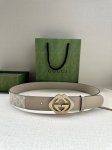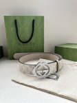Width 3.8cm Gucci's double-sided leather belt cleverly combines Gg Supreme canvas with calfskin leather, showcasing a timeless and practical design. The recognizable Double G crystal diamond buckle recreates a classic look and interprets contemporary design.