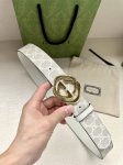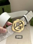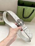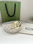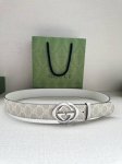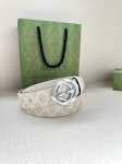 Width: 3.8cm The iconic Gucci double G logo remains a key design element in the Gucci collection. This women's wide leather belt, crafted from beige and white Gg Supreme canvas, continues this classic design. White leather details add a touch of glamour to the accessory.