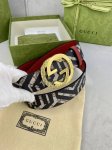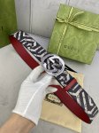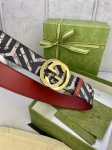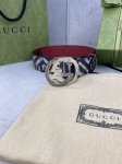 Width 4.0cm Gucci double-sided belt, one side is Gg Supreme canvas, the other side is maroon top layer calfskin. Equipped with interlocking double G steel buckle, vacuum electroplated, thickness 6.0mm